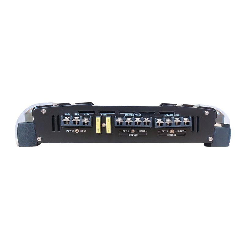 ظاهر این آمپ ساده ولی شیکه. بدنه از آلومینیوم فشرده ساخته شده که هم سبک و مقاومه، هم به خوبی گرما رو منتقل میکنه. پنلها با رنگ مشکی مات و خطوط نقرهای تزئین شدن که حس خوبی بهت میده. خروجیها از جنس فلز با ترمینالهای پیچی هستن که هم نصب رو آسون میکنن، هم اتصال محکمی فراهم میکنن.