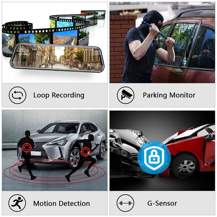 هم دوربین جلو و هم دوربین عقب این مدل، تصویر با کیفیت HD ارائه میدن که برای ضبط مسیر، مانیتورینگ عقب، و حتی ضبط تصادفها کاملاً مناسبه. نمایشگر داخلی در آینه، کیفیت خوبی داره و در نور روز و شب تصویر واضحی نمایش میده.