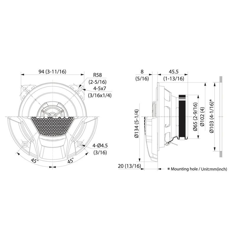 ابعاد استاندارد و طراحی دایرهای باعث شده این اسپیکر برای نصب در اکثر خودروها مناسب باشد. وزن ۳۵۰۰ گرم نشاندهنده استحکام و کیفیت ساخت بالای آن است. عمق نصب ۴۵.۵ میلیمتر نیز باعث میشود در جایگاههای استاندارد خودرو بدون مشکل نصب شود.