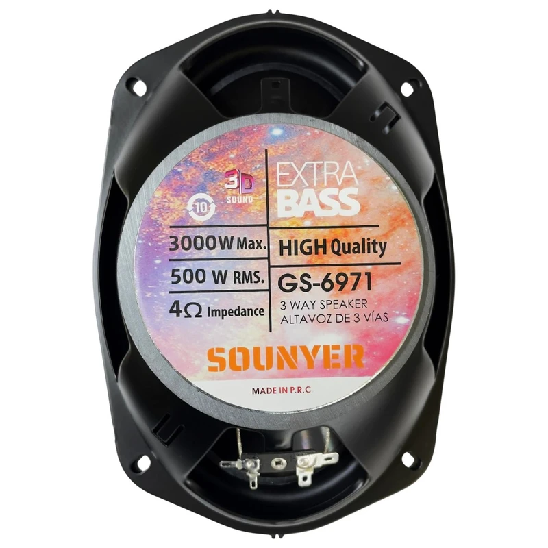 اسپیکر خودرو سونیر مدل 6971 یک بلندگوی بیضی ۶.۵ اینچی با توان خروجی واقعی ۵۰۰ وات و بیشینه توان ۲۴۰۰ وات است که برای استفاده در خودروهای سواری، شاسیبلند، ون و حتی خودروهای تجاری و اتوبوس طراحی شده. این اسپیکر با بدنهای ترکیبی از پلاستیک و فلز، مقاومت ۴ اهم و طراحی بیضی، صدایی قدرتمند و شفاف را در اختیار کاربر قرار میدهد.