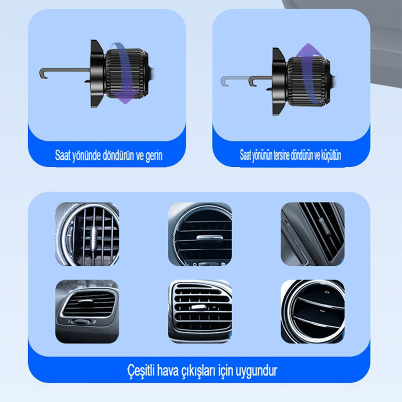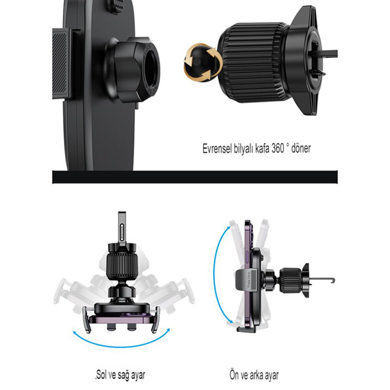 خیر، پایه گیرهای طراحی شده تا بدون فشار اضافی به دریچه متصل شود و آسیبی وارد نکند. - آیا امکان چرخش گوشی در حالت افقی و عمودی وجود دارد؟